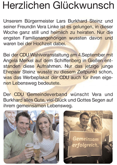 von Lars Burkhard Steinz hatte der CDU Gemeindeverband